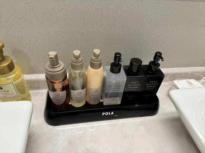 アメニティはヘアトニック、ヘアリキッド、アフターシェイブローション、ポーラの化粧水やスキンミルク、クレンジングもありましたし、ドライヤーは高級なリファのものが置かれていました。