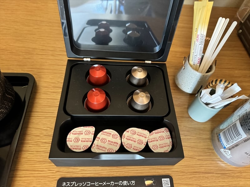 広縁にある水屋には湯沸かしポットの他にネスカフェのバリスタが置かれていますので、コーヒーやエスプレッソを飲むことができました。