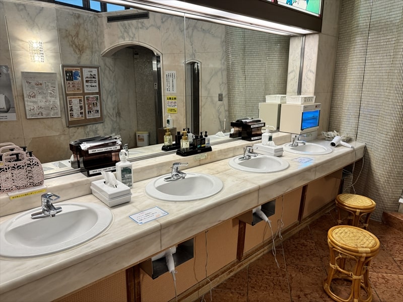 大浴場はもちろん昭和レトロな雰囲気となっていて、展望もあって良いのですが、残念だったのは浴場の大きなガラス窓が蜘蛛の巣が張って気持ちが悪かったですし、脱衣場も暑いのですが、脱衣棚のすぐ上にある空調の空気の出口がホコリだらけで、着替えていて気分が良くありませんでした。