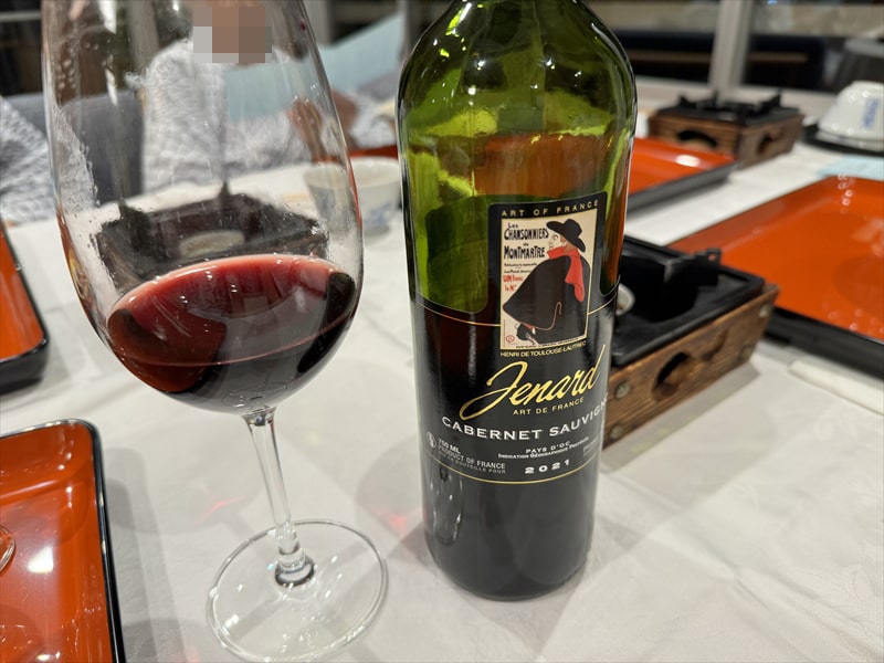 ちなみにワインは一番安価なフランス産赤ワインのフルボトルの4,950円のジュナール・カベルネ・ソーヴィニオンを頂きました。