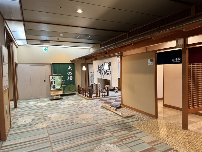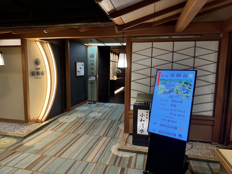 本館2階の連絡通路から別邸の帰郷邸まで行き、そこから再度連絡通路を使って展望大露天風呂まで行くのですが、それほど遠くはありません。