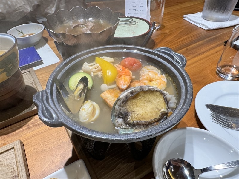 お刺身は新鮮でおいしかったのですが、特に美味しいと感じたのはブイヤベースで、鮑も美味しかったですし、バケットも用意されていましたのでスープにパンを浸して美味しく頂くことができました。