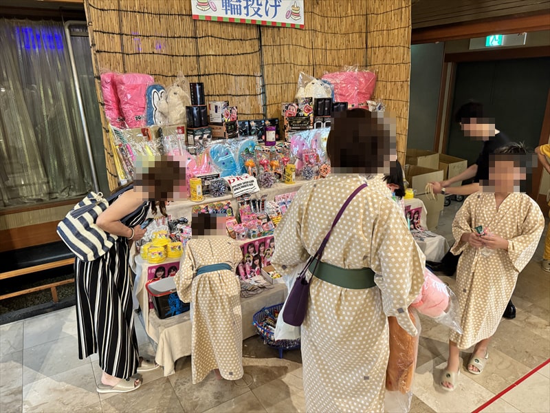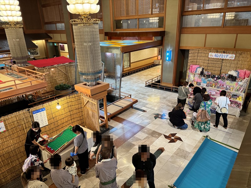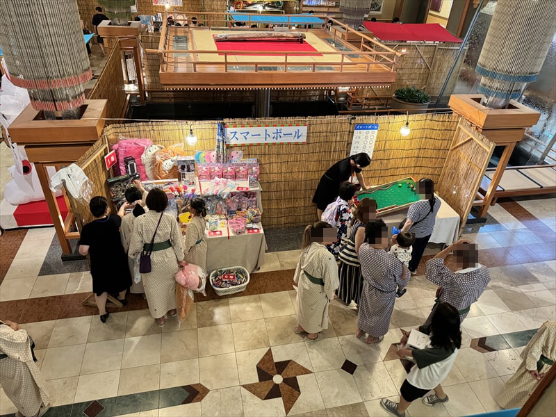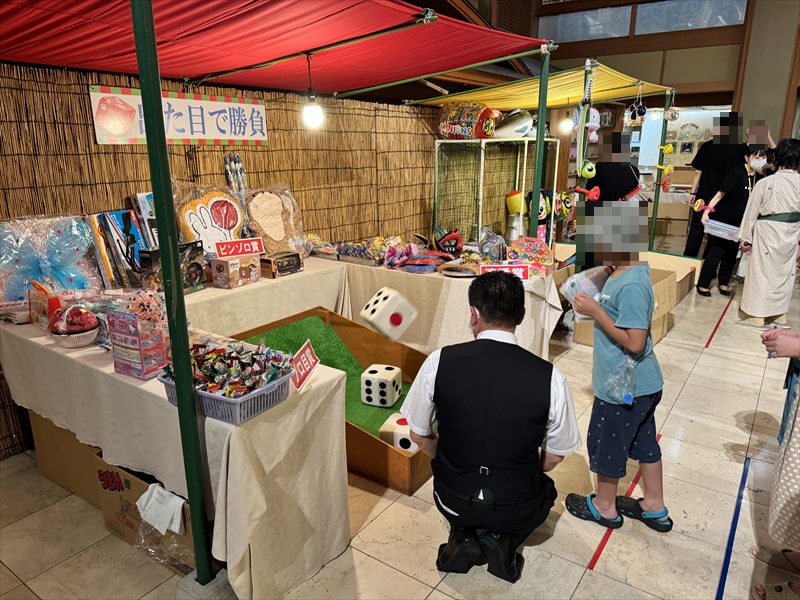 夕食後には夏休みでしたので午後7時から8時30分まで輪投げや射的、サイコロ投げ、スマートボールなどの縁日が行われていて、親子連れでとても賑わっていました。