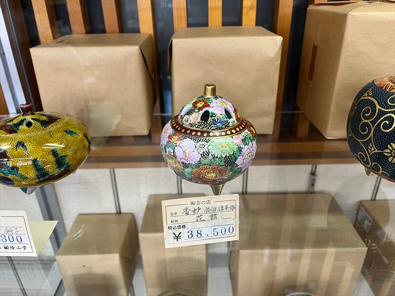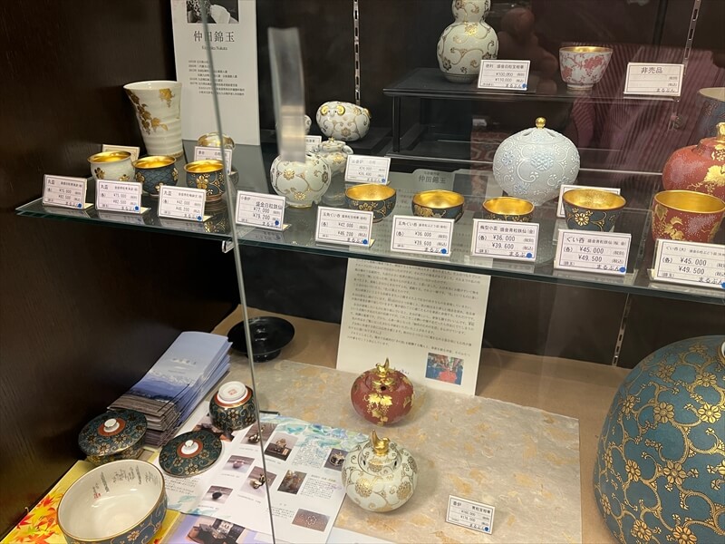 こちらで九谷焼の名品をじっくり観察できましたし、2階にある売店で九谷焼の価格も調べることができました。