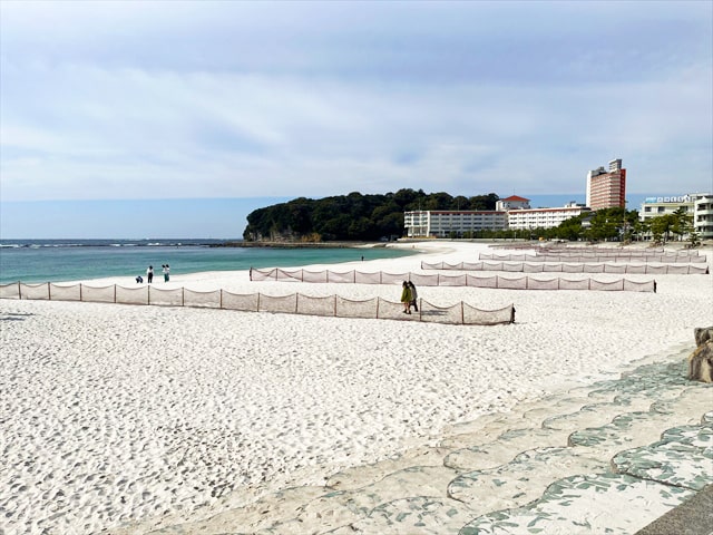 白浜の名の由来にもなった延長約620mに渡る白砂の浜は白浜の名の由来にもなった約620mほどの白砂の浜とのことで行きましたが、海水浴シーズンではありませんでしたので、無料の白良浜駐車場に車を停めることができました。