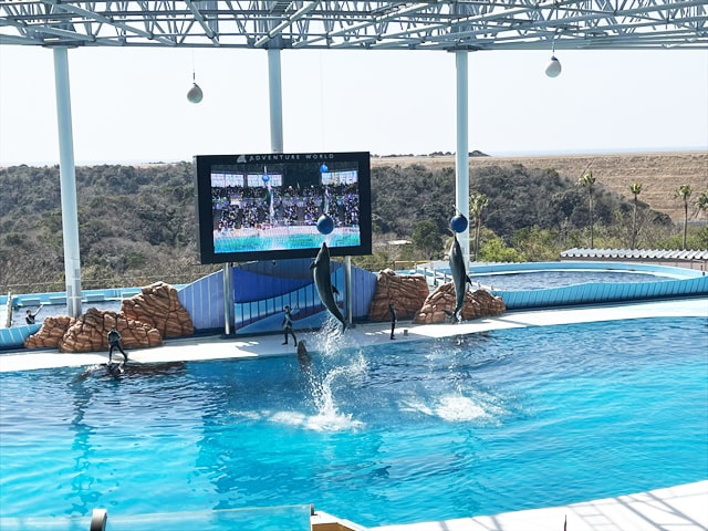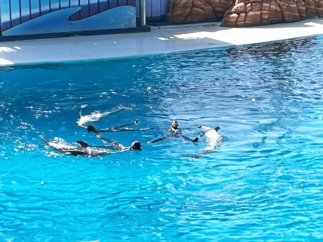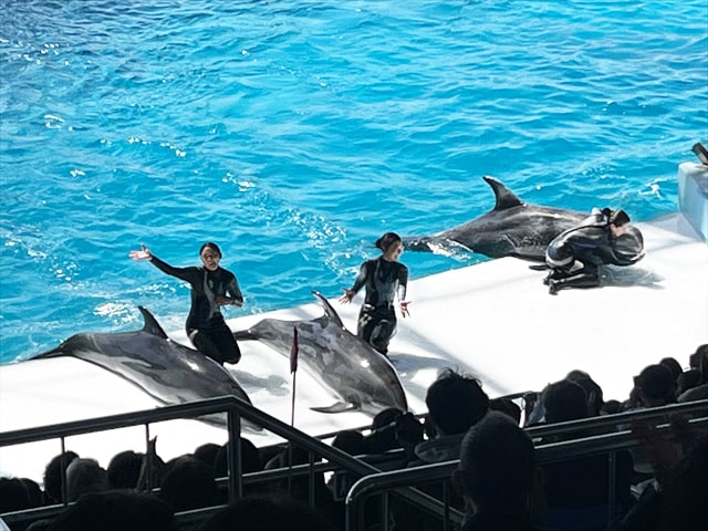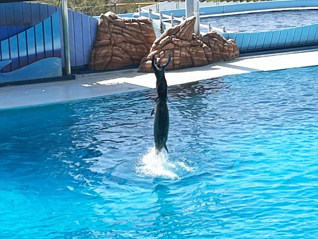 ビッグオーシャンで行われるマリンライブは20分ほどでしたが、ショーの規模も大きく楽しませてもらいました。