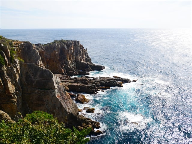 展望台からは青い海と打ち寄せる波、絶景の三段壁を眺めることができます。