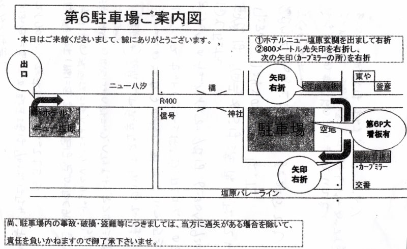 ホテル前に車を寄せて荷物を下ろしましたら駐車場の案内図をもらい向かいました。