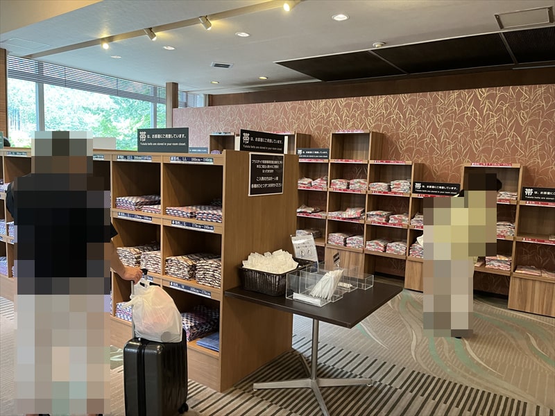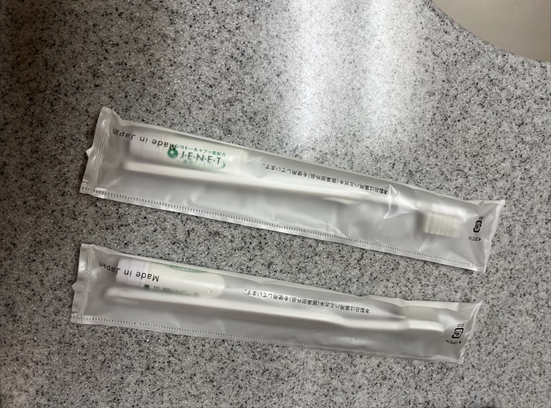 歯ブラシとヘアブラシ、髭剃りはフロントの浴衣が置いてある場所にありますので必要な方は部屋に持って行きます。