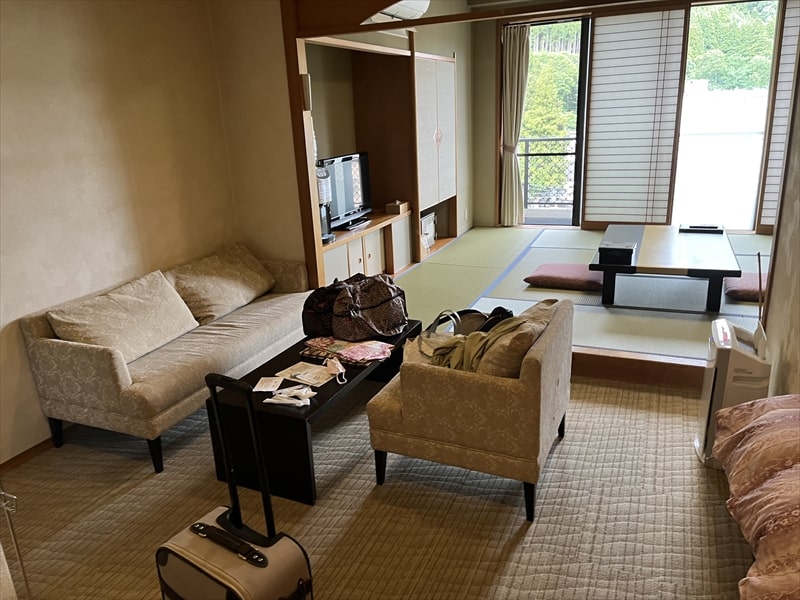 和洋室ですから椅子とテーブルのあるリビングスペースがあるのですが、こちらからは和室にあるテレビを見ることができないので不便でした。