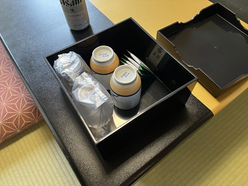 アメニティはバスタオル、フェイスタオル、ハンドソープ、半纏、浴衣、冷蔵庫、セーフティーBOX、電気ポット、空気清浄器、ウォーターサーバーなどとなっています。