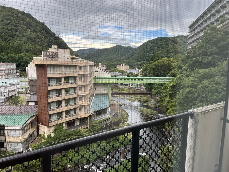 窓からは湯仙峡への渡り廊下が見えました。