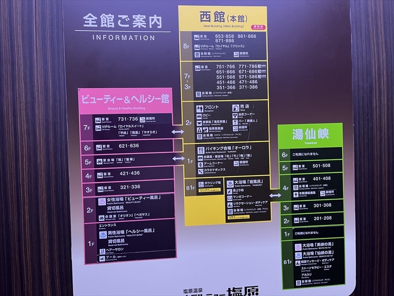 わが家はB&H館の部屋に宿泊しましたが、大浴場に行く時には館内の通路が迷路のようで迷子になりそうでした。