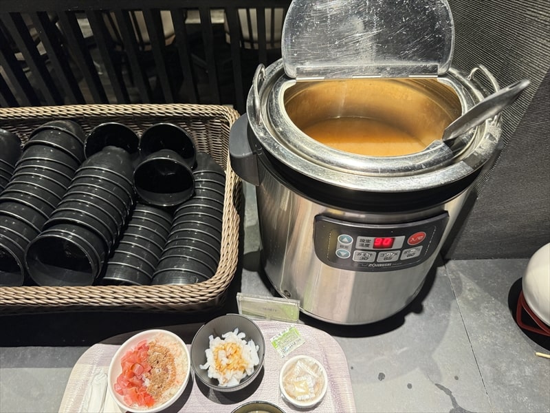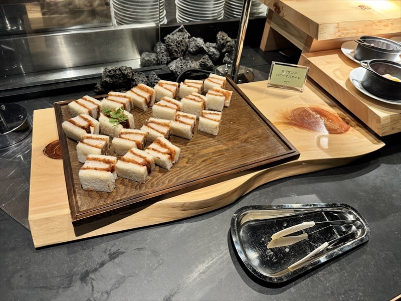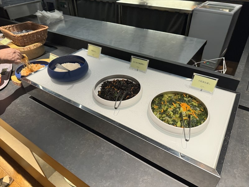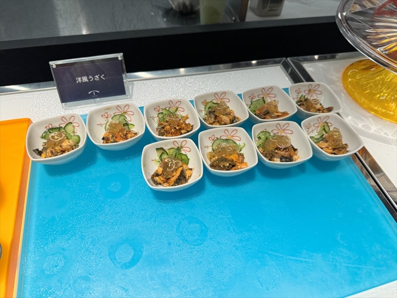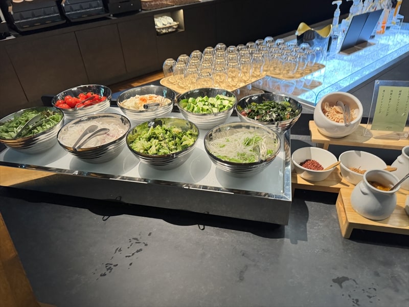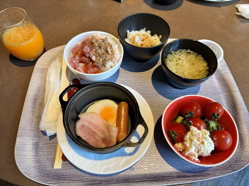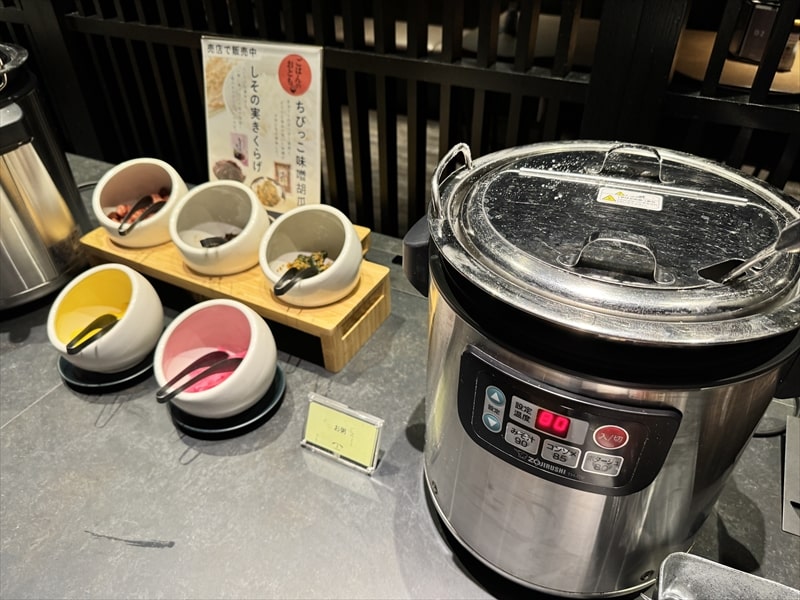 焼魚は好きなさかなを取り、自分の席に固形燃料が入ったコンロを持って行き温めて頂くのですが、このコンロでベーコンとソーセージを温めれば良かったかなと後で思いました。