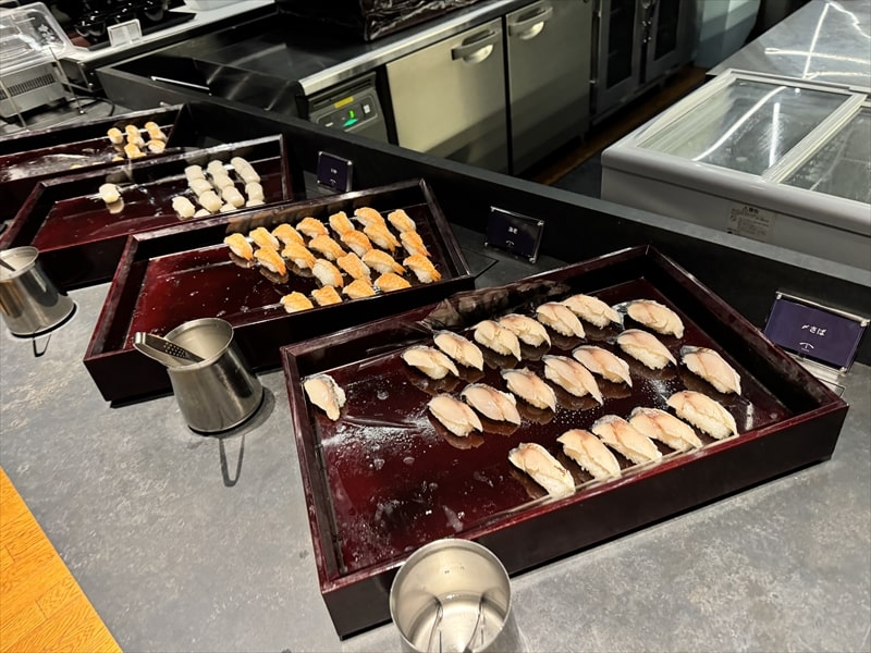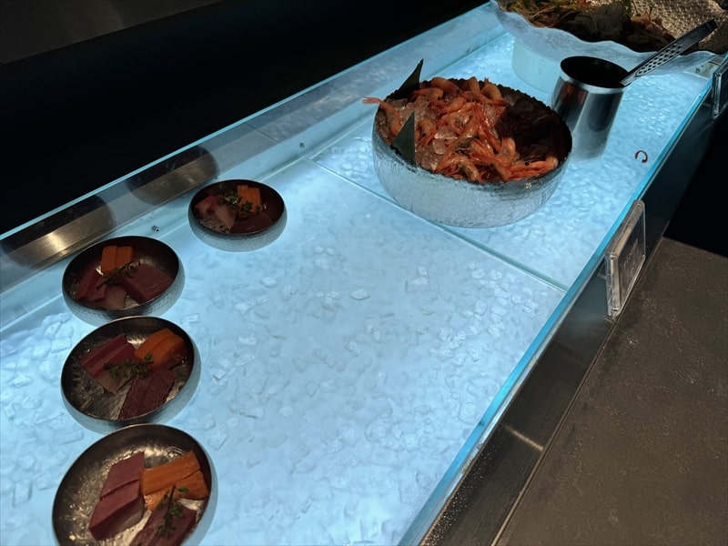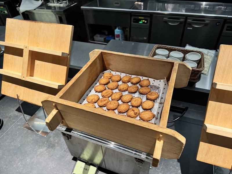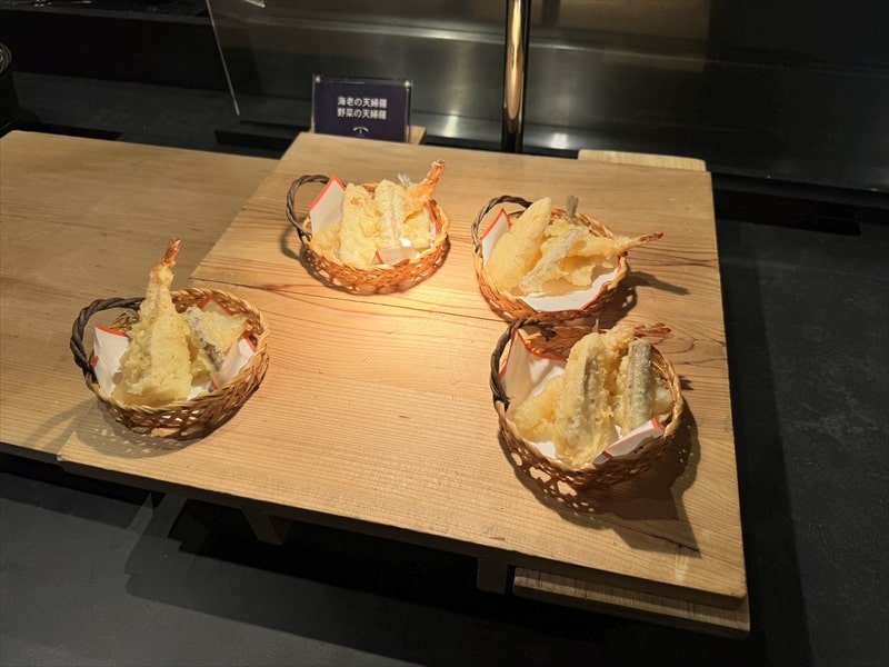 天婦羅もライブキッチン前に置かれていたので熱々かと思ったのですがすでに冷めていました。