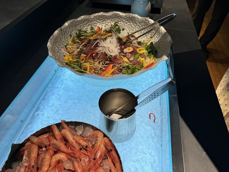 刺身は鮪、ハナチ、サーモンの盛合せと甘えび、カツオのカルパッチョしかありませんでした。