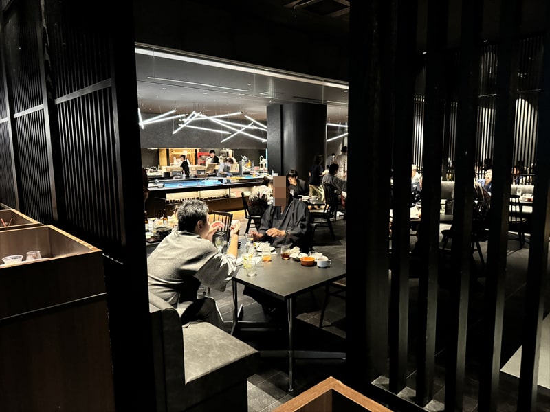 レストラン内の奥の席も一部空席がありましたが、スタッフの方は中は多くの方が居ることから音も反響して結構騒がしく感じるかもしれませんので、天井も高く広々しているこちらの席の方がおすすめと言われました。