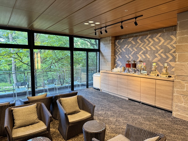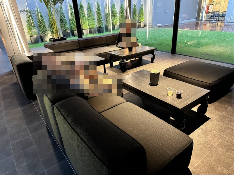 1階のレストラン手前にもコートヤードを見ながらくつろげるラウンジがあります。