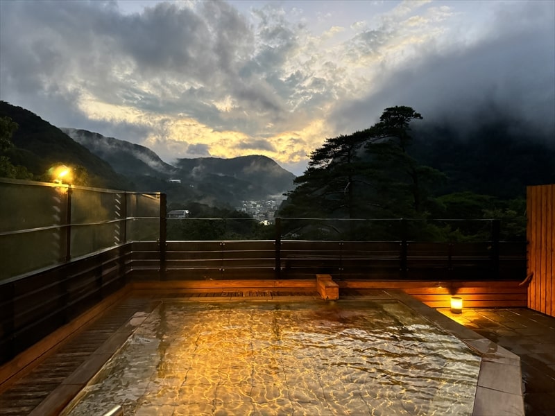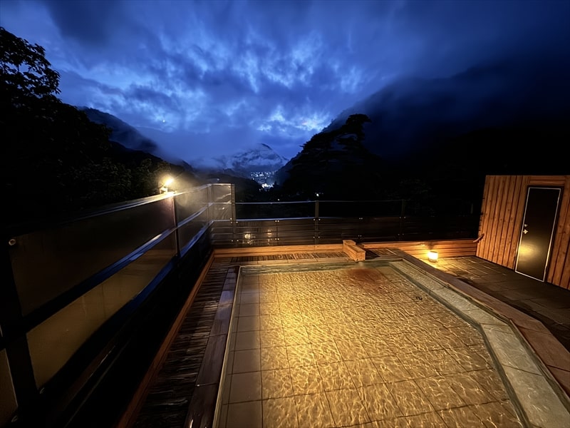 夕方からの暮れ行く景色や朝の景色も露天風呂は楽しむことができました。
