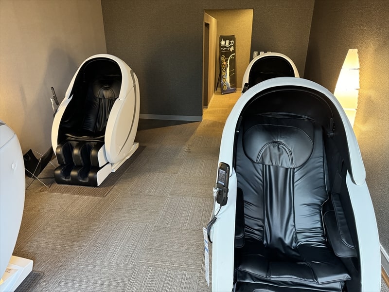 また隣には無料のマッサージ器が何台か置かれていて使うことができます。