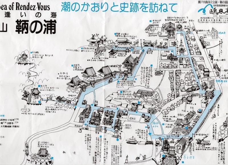 鞆の浦の観光のモデルコースは色々とあるのですが、私たちが宿泊したホテルのフロントにオリジナルの散策モデルコースの地図がありましたので、これを持って観光を行いました。